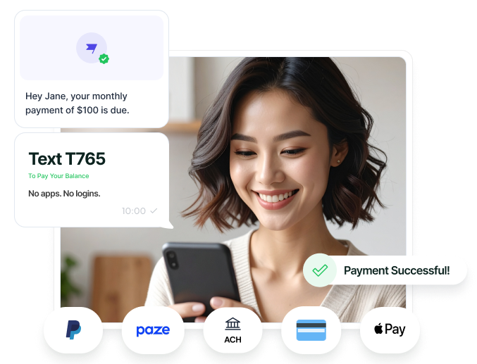 No logins. No apps. No friction. Customers pay in under a minute through text, RCS, or email, creating a modern, branded experience that keeps them coming back.