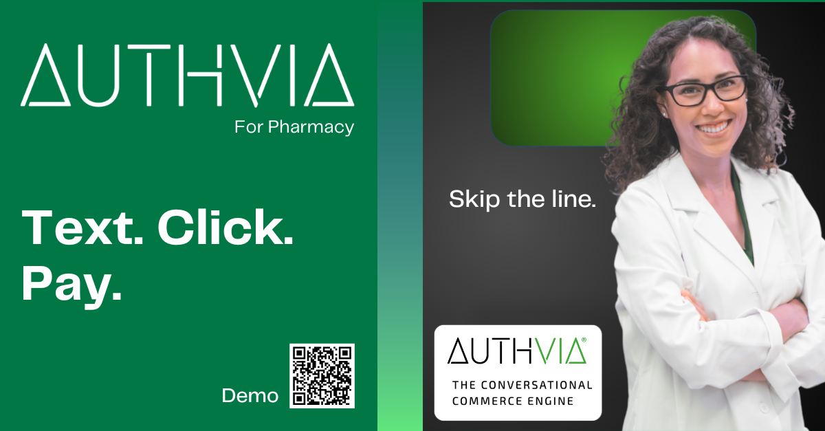 Payment shouldn’t be the longest step in filling a prescription. Authvia’s conversational commerce platform lets pharmacies of any size text, click, and collect, securely and instantly.