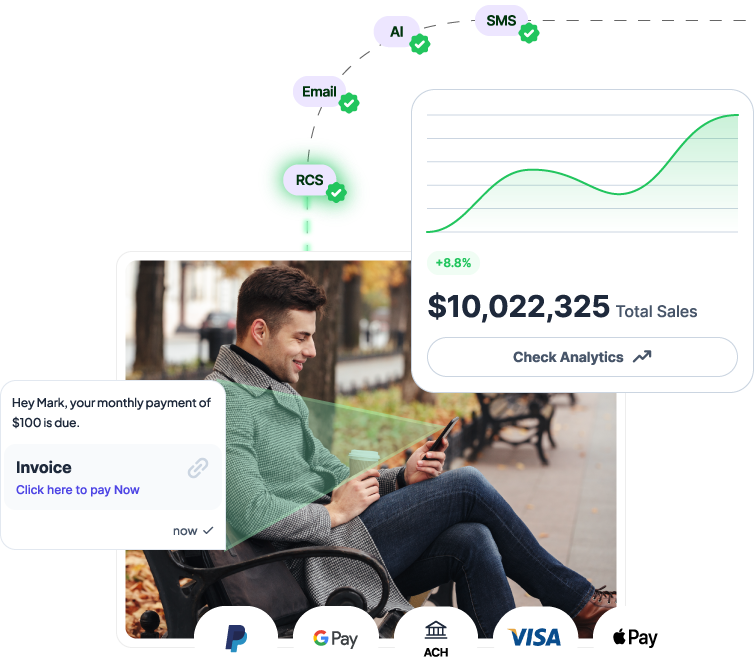 Deliver frictionless, app-free payments across SMS, email, and chat with built-in security and compliance.